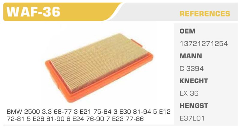 HAVA FİLTRESİ BMW 2500 3.3 (68-77) - 3 E21 (75-84) - 3 E30 (81-94) - 5 E12 (72-81) - 5 E28 (81-90) - 6 E24 (76-90) - 7 E23 (77-86)