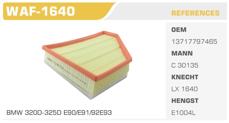 BMW 320D ve 325D modelleri için özel olarak tasarlanmış bu hava filtresi, aracınızın motor performansını artırmak için kritik bir bileşendir. Hava filtresi, motorun düzgün çalışması için temiz hava sağlarken, motorun aşınma ve yıpranma oranını da minimize eder. E90, E91, E92 ve E93 kasa numaralarına sahip BMW'ler için ideal bir seçimdir.