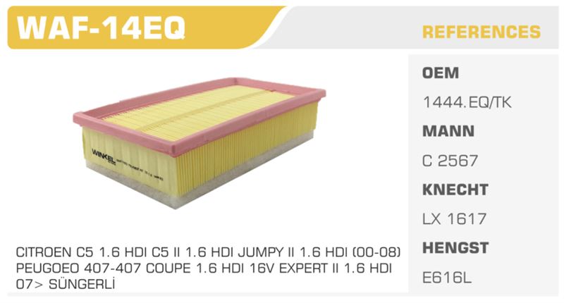 HAVA FİLTRESİ FIAT SCUDO II 1.6JTD-2.0İ-2.0JTD 07> SÜNGERLİ