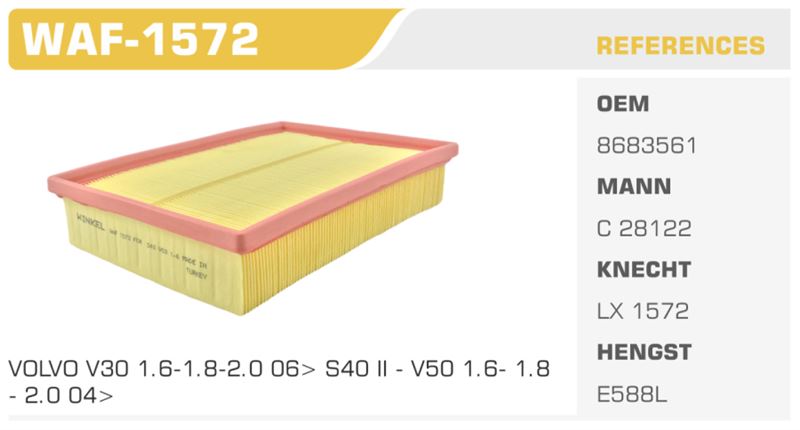 - Uyumlu Modeller: Bu hava filtresi, 2003-2007 yılları arasında üretilmiş Ford Focus C-MAX 1.6Tİ-VCT, 1.8 16V ve 2.0 motor seçenekleri ile 2006 sonrası Focus Cabriolet 1.6 16V ve 2.0 16V, ayrıca 2004 sonrası Focus II 1.4, 1.6, 1.8 ve 2.0 16V motorları ile uyumludur.