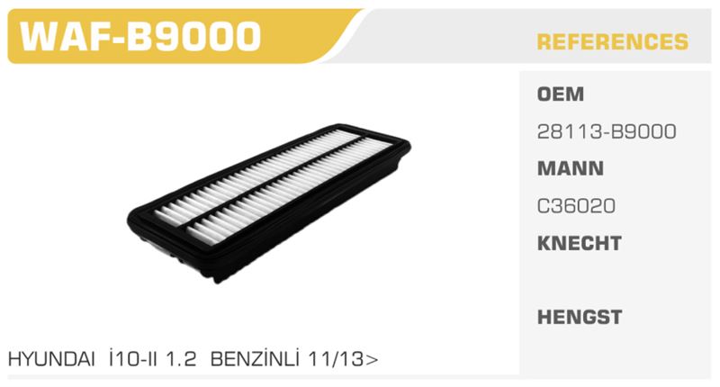 Güvenilir bir hava filtresi arıyorsanız, tercihiniz HAVA FİLTRESİ HYUNDAI İ10-II 1.2 BENZİNLİ olmalıdır. Şimdi hemen sipariş verin ve aracınızın performansını artırın!