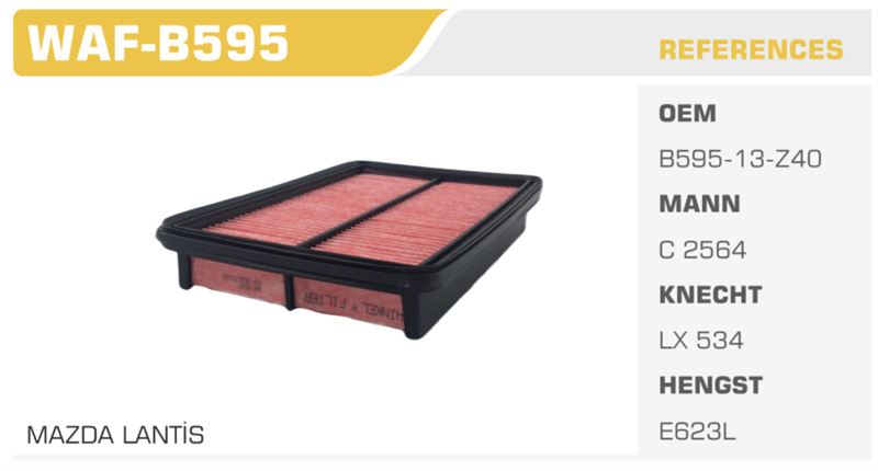 Hava filtresi, Mazda Lantis modellerinin tümünde kullanılabilir. Araç sahiplerinin motorda meydana gelebilecek aşınmayı önlemek ve araçlarının performansını en üst düzeye çıkarmak için düzenli aralıklarla hava filtresi değişimi yapmaları önerilmektedir. Bu değişim, motorun daha iyi çalışması için hayati önem taşır.