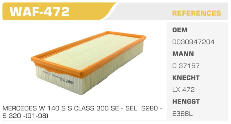 HAVA FİLTRESİ MERCEDES W 140 S S CLASS 300 SE - SEL S280 - S 320 (91-98)