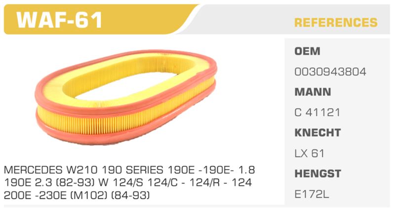 HAVA FİLTRESİ MERCEDES W210 190 SERİSİ 190E - 190E - 1.8 190E 2.3 (82-93) W 124/S 124/C - 124/R - 124 200E - 230E (M102) (84-93)