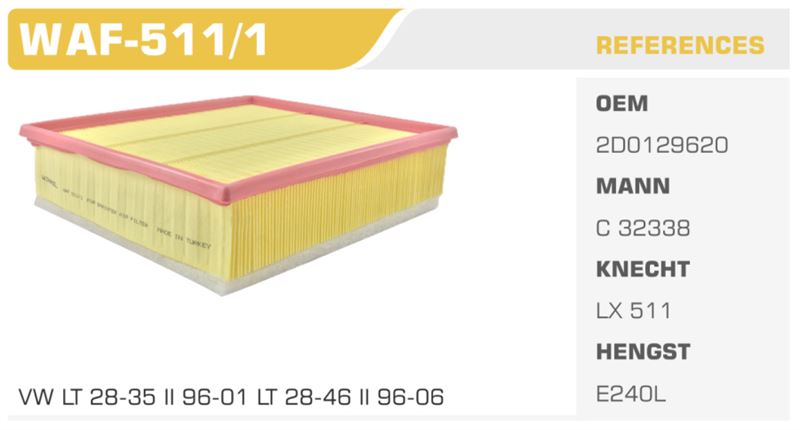 HAVA FİLTRESİ VW LT 28-35 II 96-01 LT 28-46 II 96-06, kaliteli ve dayanıklı yapısıyla, motorunuzun performansını artırmak ve uzun ömürlü olmasını sağlamak için ideal bir tercihtir. Araç sahiplerinin bakım planlarına dahil etmesi gereken bu parça, hem motor sağlığı hem de yakıt ekonomisi açısından oldukça önemlidir. Kaliteli bir hava filtresi ile sürdürülebilir bir sürüş deneyimi yaşamak için gereken adımı atın!