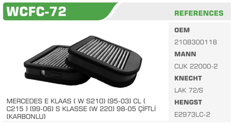 POLEN FİLTRESİ MERCEDES E KLASAS (W S210) (95-03) CL (C215) (99-06) S KLASSES (W 220) 98-05 ÇİFTLİ (KARBONLU)