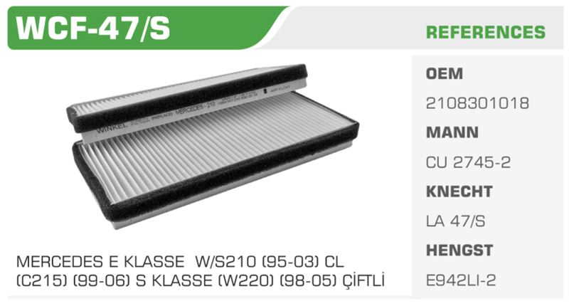 POLEN FİLTRESİ MERCEDES SPRINTER 616 (01-06) SPRINTER 95> (KARBONLU)