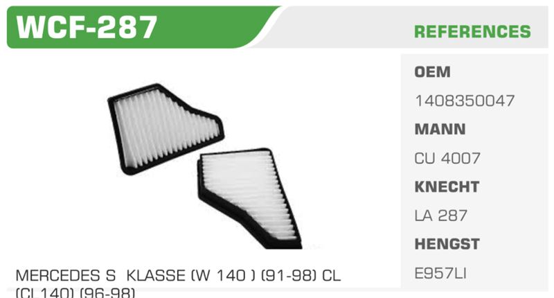 POLEN FİLTRESİ MERCEDES S KLASSE (W 140 ) (91-98) CL (CL140) (96-98