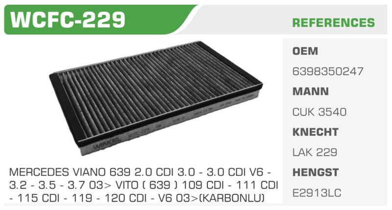 POLEN FİLTRESİ MERCEDES VIANO 639 2.0 CDI 3.0 - 3.0 CDI V6 - 3.2 - 3.5 - 3.7 03> VITO ( 639 ) 109 CDI - 111 CDI - 115 CDI - 119 - 120 CDI - V6 03>(KARBONLU)