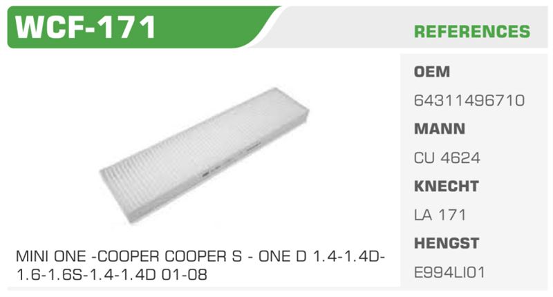 POLEN FİLTRESİ - MINI ONE, COOPER, COOPER S - ONE D 1.4-1.4D 1.6-1.6S (2001-2008)