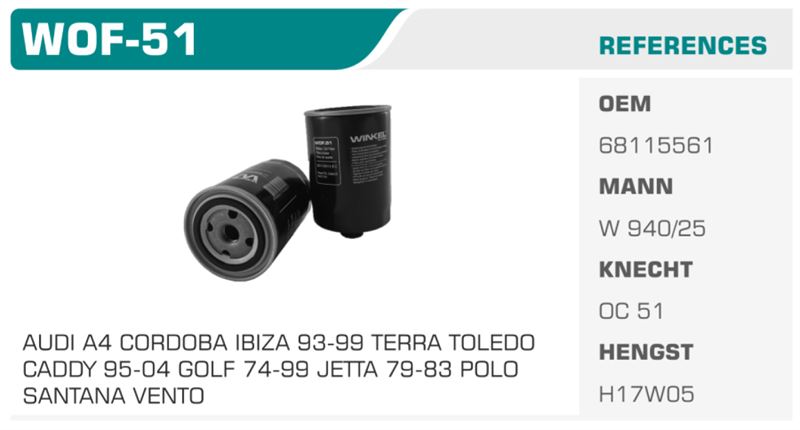YAĞ FİLTRESİ AUDI A4, CORDOBA, IBIZA (93-99), TERRA, TOLEDO, CADDY (95-04), GOLF (74-99), JETTA (79-83), POLO, SANTANA VE VENTO için tasarlanmış mükemmel bir üründür. Araç sahibiyseniz ve motorunuzun sağlığını korumak istiyorsanız, bu yağ filtresi büyük bir mutlulukla aracınıza katkı sağlayacaktır. Yüksek performans ve güvenilirlik arıyorsanız, bu yağ filtresini kesinlikle tercih etmelisiniz.