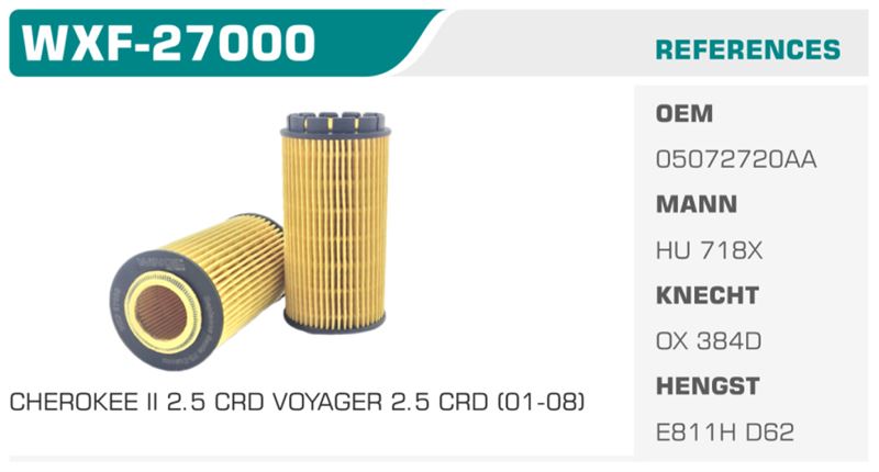 YAĞ FİLTRESİ CHEROKEE II 2.5 CRD VOYAGER 2.5 CRD (01-08)