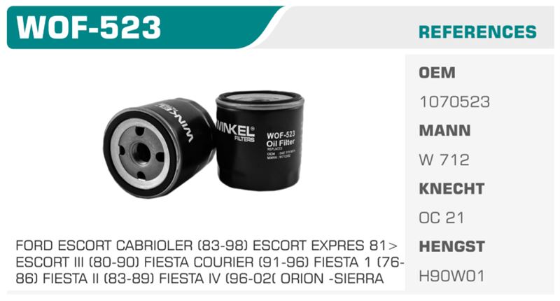 - Uyumluluk: Bu yağ filtresi, 1983-1998 yılları arasında üretilen Ford Escort Cabrio, Escort Expres (1981 ve sonrası), Escort III (1980-1990), Fiesta Courier (1991-1996), Fiesta 1 (1976-1986), Fiesta II (1983-1989), Fiesta IV (1996-2002), Orion ve Sierra modelleri ile mükemmel bir uyum sağlar.
