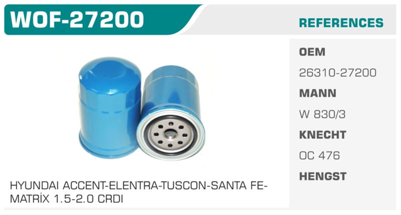YAĞ FİLTRESİ HYUNDAI ACCENT-ELENTRA-TUSCON-SANTA FE MATRİX 1.5-2.0 CRDI