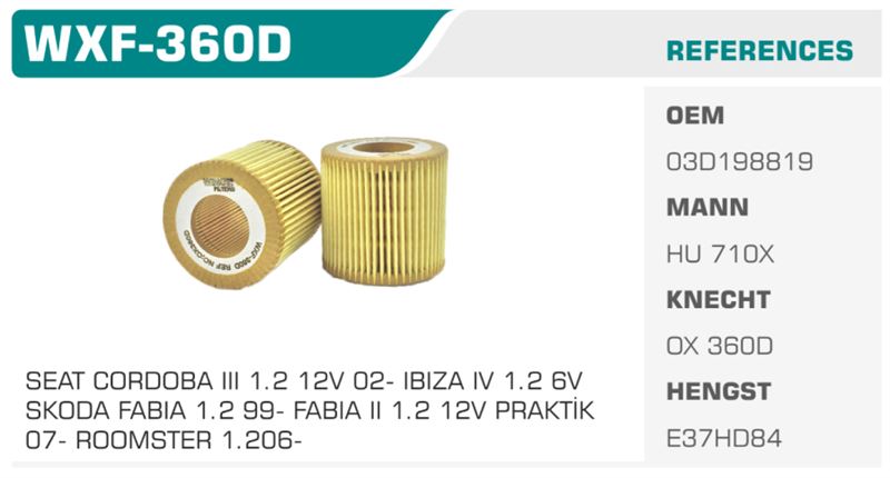 YAĞ FİLTRESİ SEAT CORDOBA III 1.2 12V (02-), IBIZA IV 1.2 6V, SKODA FABIA 1.2 (99-), FABIA II 1.2 12V PRAKTİK (07-), ROOMSTER 1.2 06