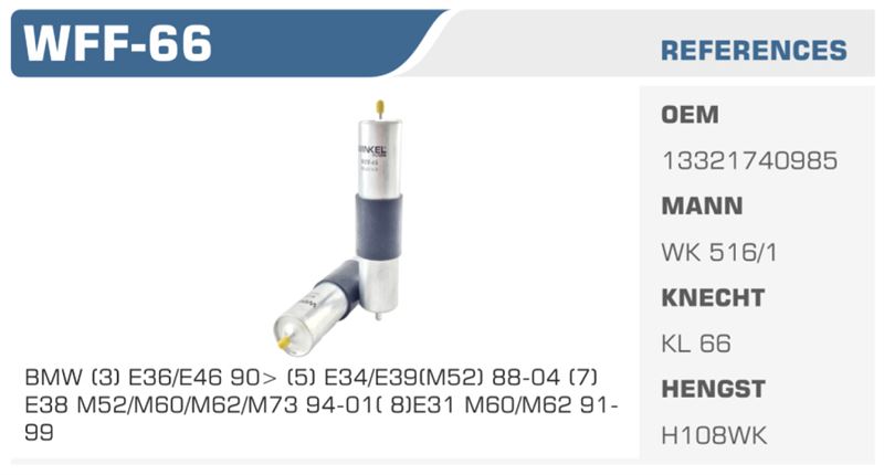 YAKIT FİLTRESİ BMW (3) E36/E46 90> (5) E34/E39(M52) 88-04 (7) E38 M52/M60/M62/M73 94-01( 8)E31 M60/M62 91 99