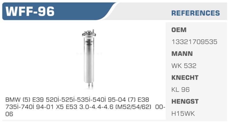 YAKIT FİLTRESİ BMW (5) E39 520İ-525İ-535İ-540İ 95-04 (7) E38 735İ-740İ 94-01 X5 E53 3.0-4.4-4.6 (M52/54/62) 00-06