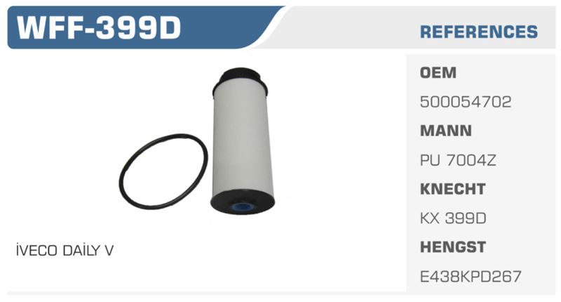 - Kolay Montaj: İVECO Daily V model araçlar için özel olarak üretilen bu filtrenin montajı, kullanıcı dostu bir tasarıma sahiptir ve herhangi bir ekstra ekipman gerektirmeden kolayca değiştirilebilir.