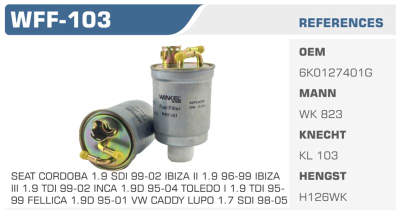 YAKIT FİLTRESİ - SEAT CORDOBA 1.9 SDI (99-02), IBIZA II 1.9 (96-99), IBIZA III 1.9 TDI (99-02), INCA 1.9D (95-04), TOLEDO I 1.9 TDI (95-99), FELLICA 1.9D (95-01), VW CADDY, LUPO 1.7 SDI (98-05)
