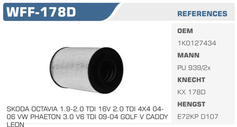 Otomobilinizin performansını artırmak ve motor sağlığını korumak için YAKIT FİLTRESİ SKODA OCTAVIA 1.9-2.0 TDI 16V 2.0 TDI 4X4 04-06 VW PHAETON 3.0 V6 TDI 09-04 GOLF V CADDY LEON modelini tercih edebilirsiniz. Uzun ömürlü yapısı ve kolay montajı ile sizi yarı yolda bırakmayacak bir çözüm sunar. Temiz ve güvenilir yakıt ile yola çıkmaya hazır olun!
